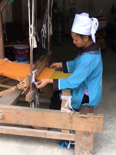 | Deze Miao docente heeft vanmiddag haar borduurwerk voltooit. Zij heeft er 2 maanden elke schooldag aan gewerkt! Geen wonder dat de leerlingen ook erg mooi werk maken! |